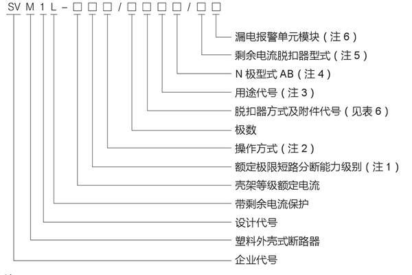 4. SVM1L 系列如带漏电报警单元模块,则附件只提供▲规格;漏电报警单元模块有以下两种方式,用户根据需要在订货时注明: