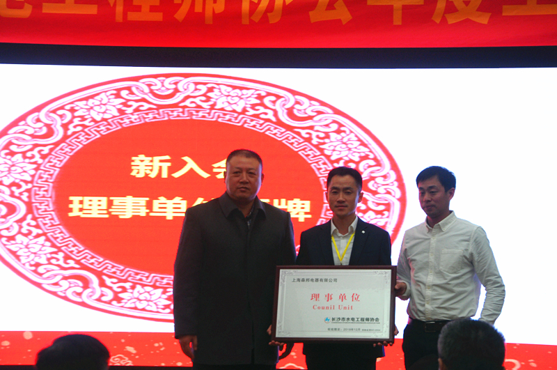 2018年元月7日,森邦电气有限公司在湖南省长沙市成立“森邦电气湖南分公司”。并同时加入“长沙市水电工程师协会”创始理事单位。成为“长沙市水电工程师协会“重点推广电器产品!协会副会长、湖南省给排水委员会高级专家周喜今,金茂集团华中区高级机电总陈强为我公司总经理张小兵授牌。